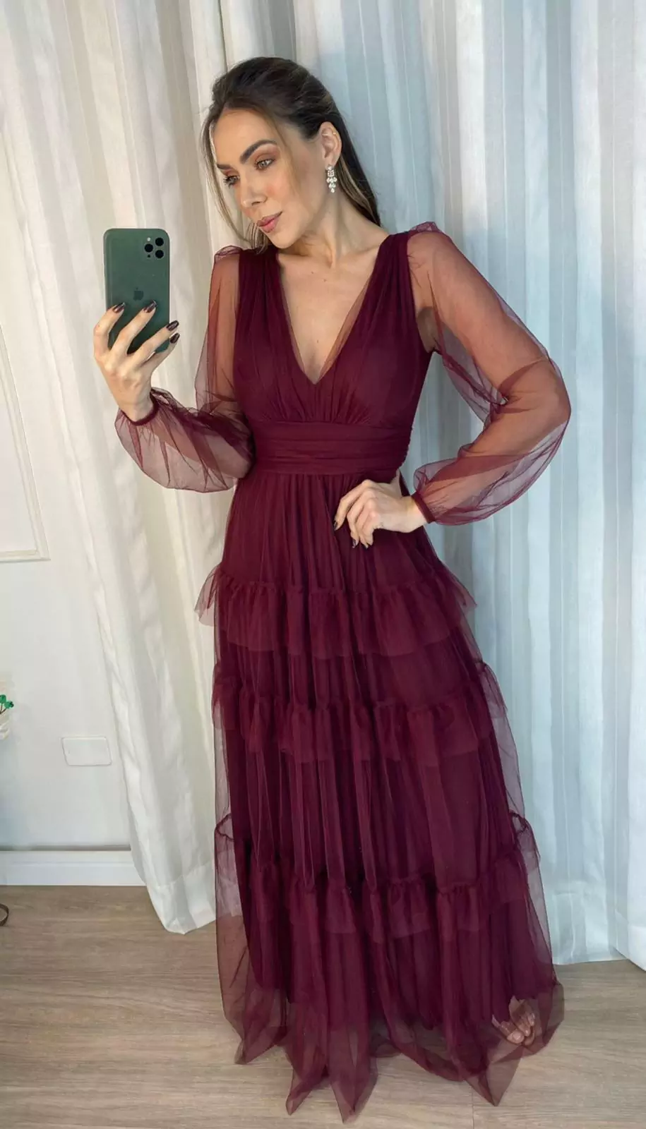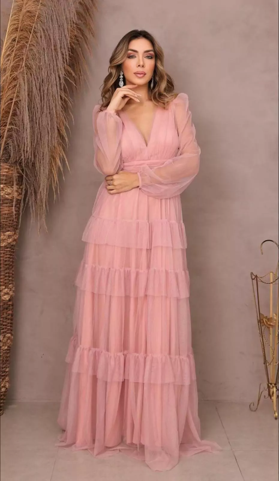 Mangas Longas: Com mangas longas, o vestido Antonella adiciona um toque de sofisticação e charme ao visual, tornando-o adequado para diversas ocasiões, desde eventos formais até celebrações especiais.