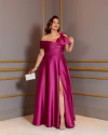 A fenda lateral adiciona um ar de sensualidade sutil, enquanto o zíper invisível nas costas proporciona um acabamento impecável e discreto, perfeito para eventos sociais e festas sofisticadas.