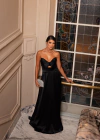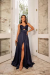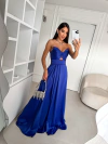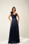 O vestido Lindsay é uma peça que combina sofisticação e modernidade, confeccionado inteiramente em tecido Prada, que oferece um caimento estruturado e elegante.