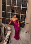 Seu design ombro a ombro revela um charme delicado e contemporâneo, enquanto a modelagem sereia com fenda adiciona um toque de sensualidade e movimento ao look. Para maior conforto e segurança, o vestido conta com bojo que modela o busto e um zíper nas costas para um ajuste perfeito.