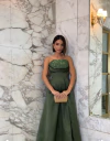 Tecido Zibeline com Detalhe Paitê: Confeccionado em tecido zibeline, este vestido oferece um caimento impecável e uma textura luxuosa, enquanto os detalhes em Paitê adicionam um brilho sutil, tornando-o ideal para brilhar à noite.
